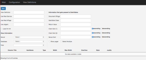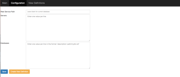 The purpose of this XPage is to store some basic configuration information that is used when creating View Definitions.