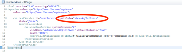 When creating the View Definition above, we told it that our REST service was located on the restServices XPage: